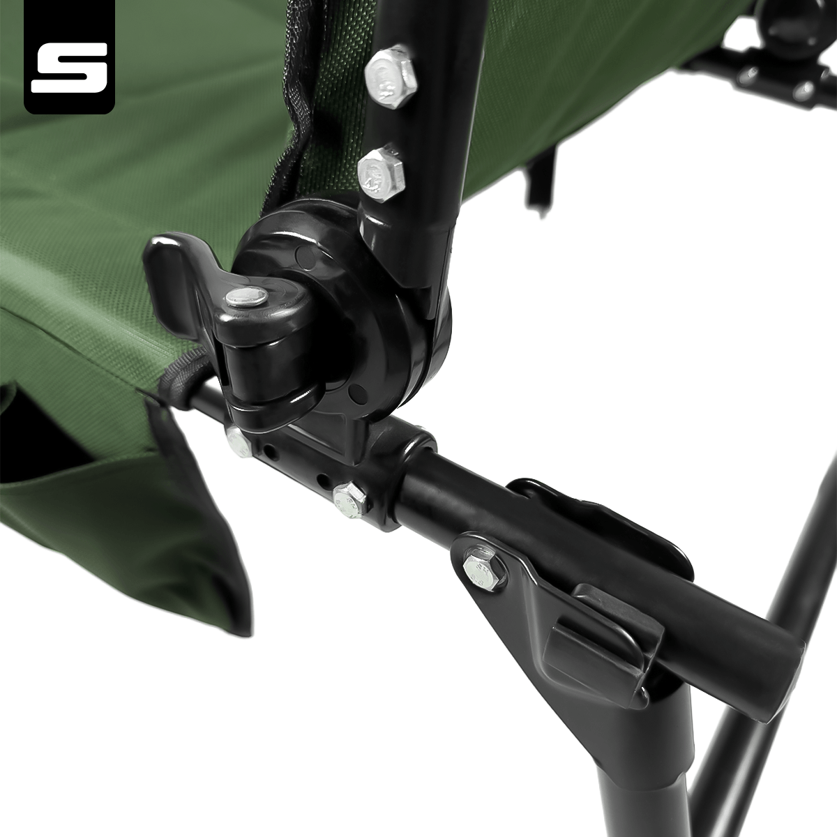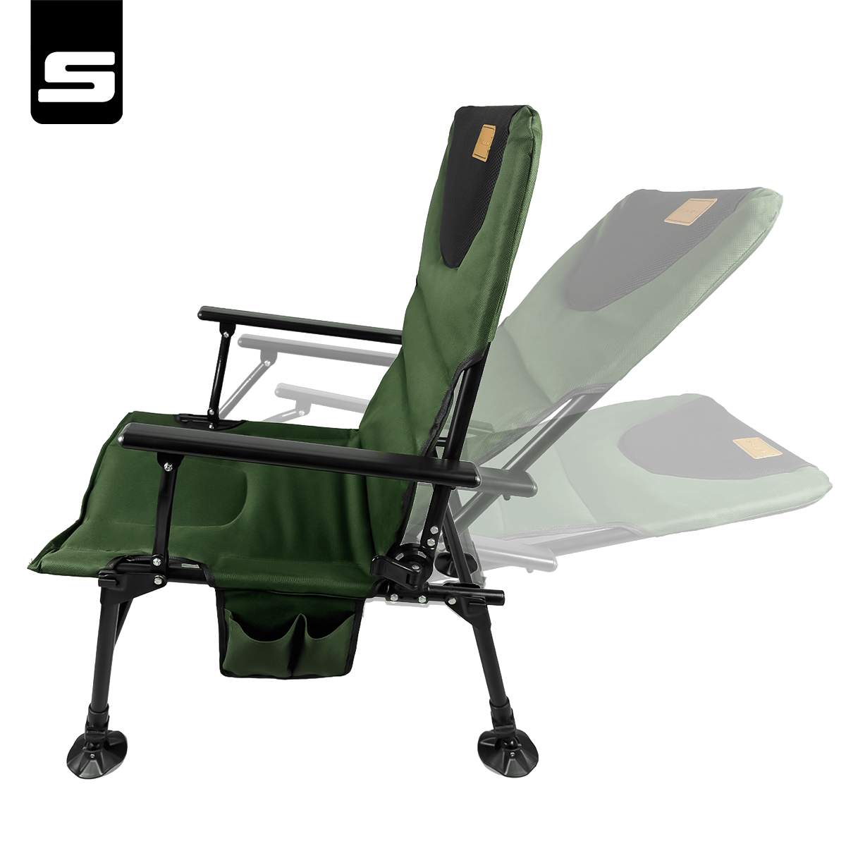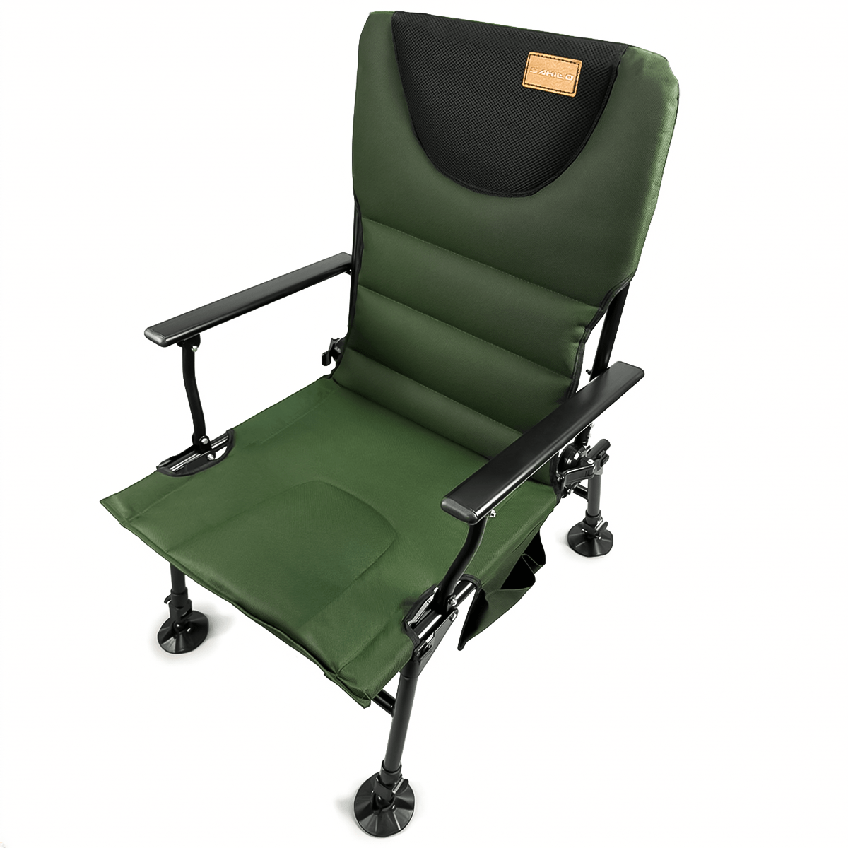 Regulowane oparcie – płynna zmiana kąta nachylenia pozwala dopasować pozycję od siedzącej do półleżącej, zapewniając maksymalny komfort nawet podczas wielogodzinnego wędkowania.