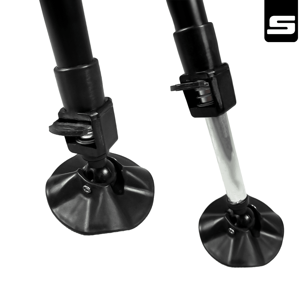 Szerokie, antypoślizgowe stopki z technologią Rotation & Tilt – automatyczne dopasowanie do podłoża, większa przyczepność i brak zapadania się w miękkim gruncie