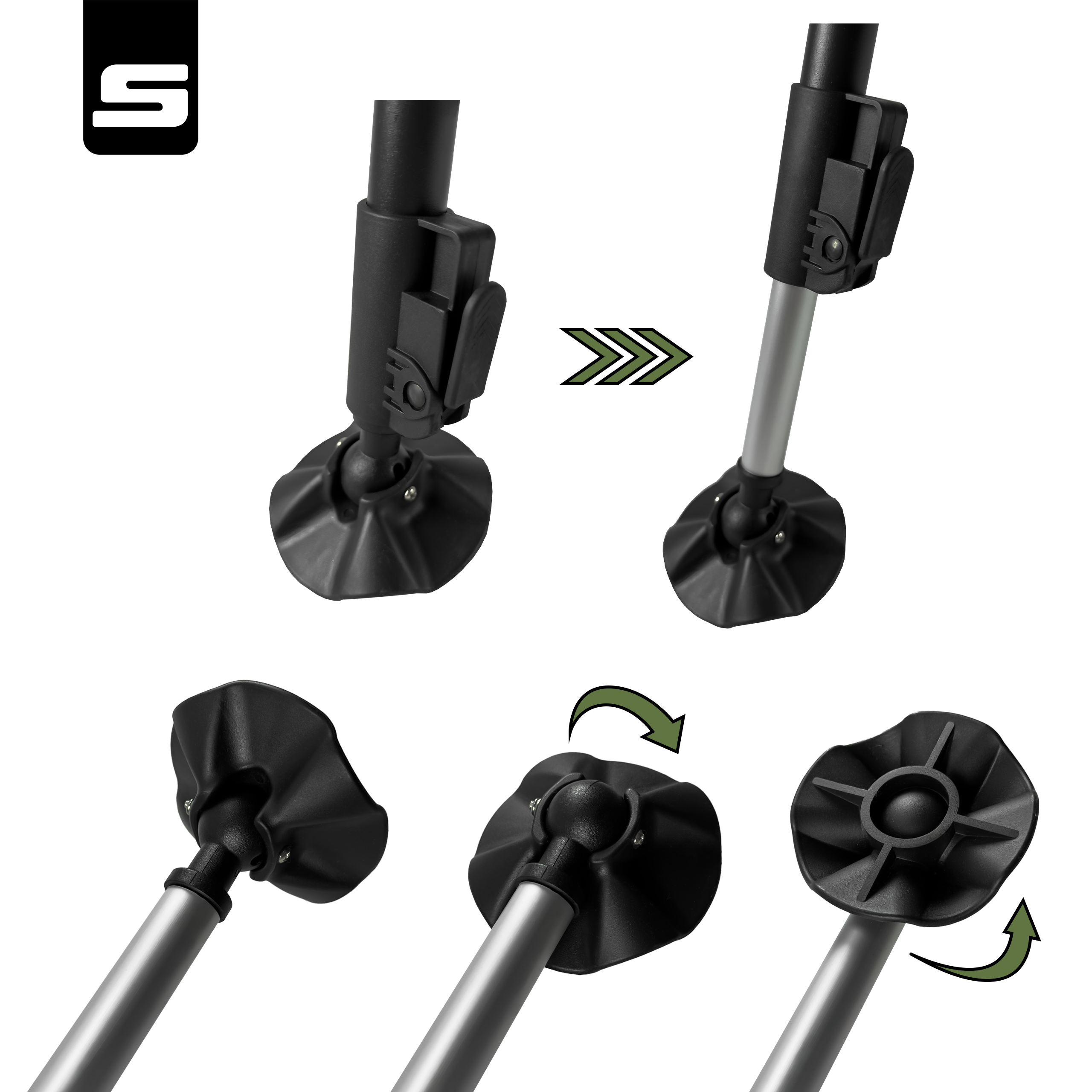 Regulowane nogi (25–35 cm) – na przegubach, stabilizują kołyskę nawet na miękkim i nierównym podłożu.