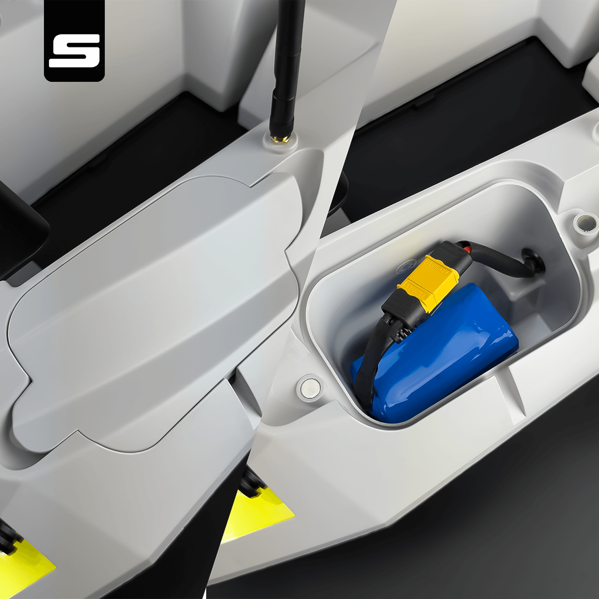 Łódka umożliwia jednoczesny montaż dwóch baterii w osobnych komorach po obu stronach kadłuba, co nie tylko wydłuża czas pracy, ale również zapewnia idealne wyważenie jednostki na wodzie. Solidna obudowa wykonana z wytrzymałego ABS, osłonięte wirniki oraz pianka antyuderzeniowa zamontowana na kadłubie gwarantują wysoki poziom bezpieczeństwa i odporności na uszkodzenia. Całość dopełnia nowoczesny, dynamiczny design, który wyróżnia HYDRĘ GPS na tle konkurencyjnych modeli.