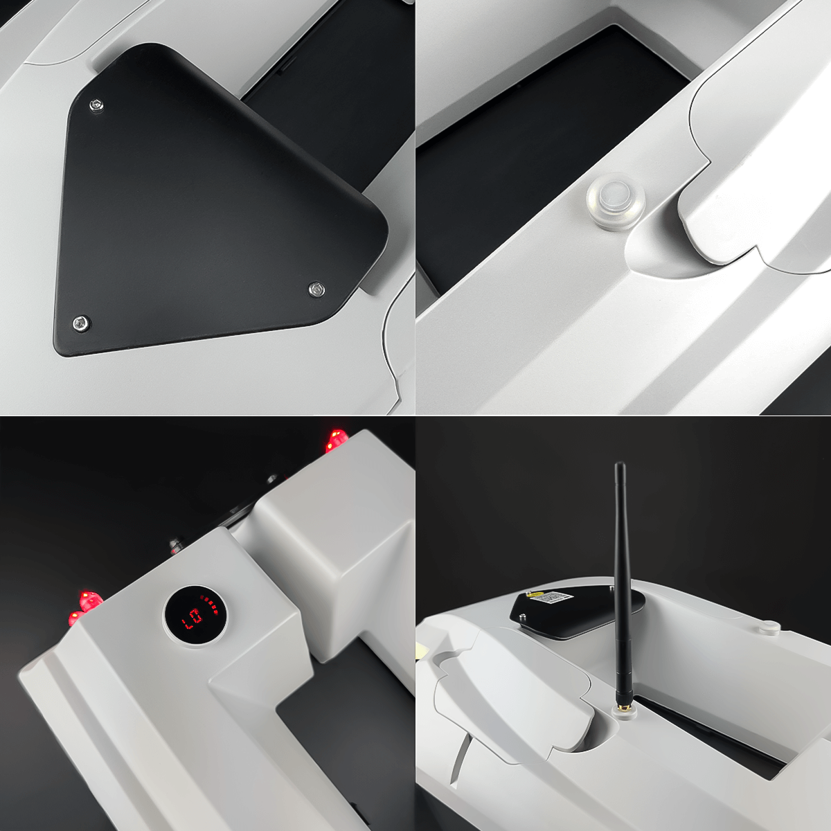 HYDRA GPS posiada pojemny podajnik o ładowności do 2 kg, zwalniany za pomocą elektromagnesu. Wbudowane, ultra jasne oświetlenie LED (6 diod – 4 z tyłu i 2 z przodu) z dwoma trybami pracy: stałym i migającym, umożliwia komfortowe użytkowanie także po zmroku. Trzy tryby prędkości pozwalają dostosować pracę łodzi do aktualnych warunków i potrzeb. Wbudowany kolorowy wyświetlacz informuje o stanie naładowania baterii, a ergonomiczny pilot z dużym, czytelnym ekranem i joystickiem 360° gwarantuje intuicyjne i precyzyjne sterowanie.