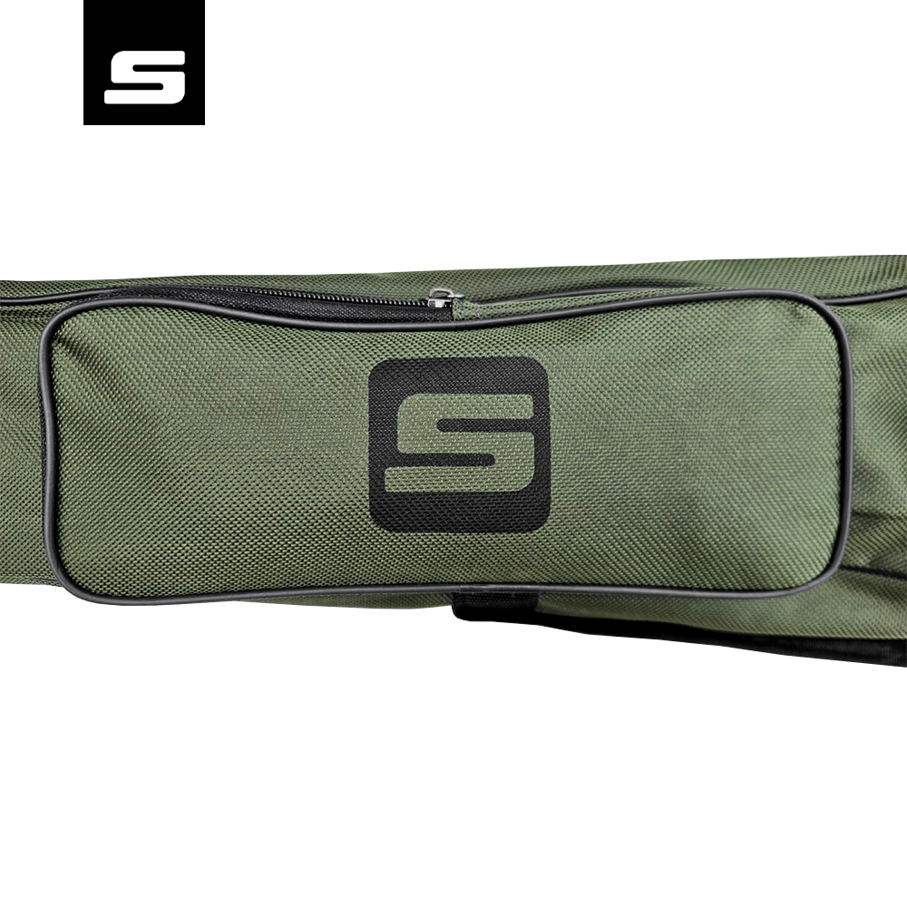 Dwie dodatkowe zewnętrzne kieszenie zwiększają funkcjonalność pokrowca. Mniejsza kieszeń o wymiarach 28 x 10 cm oraz większa o wymiarach 58 x 10 cm są idealne do przechowywania akcesoriów wędkarskich, takich jak przynęty, linki czy narzędzia, zapewniając łatwy dostęp do najpotrzebniejszych przedmiotów.