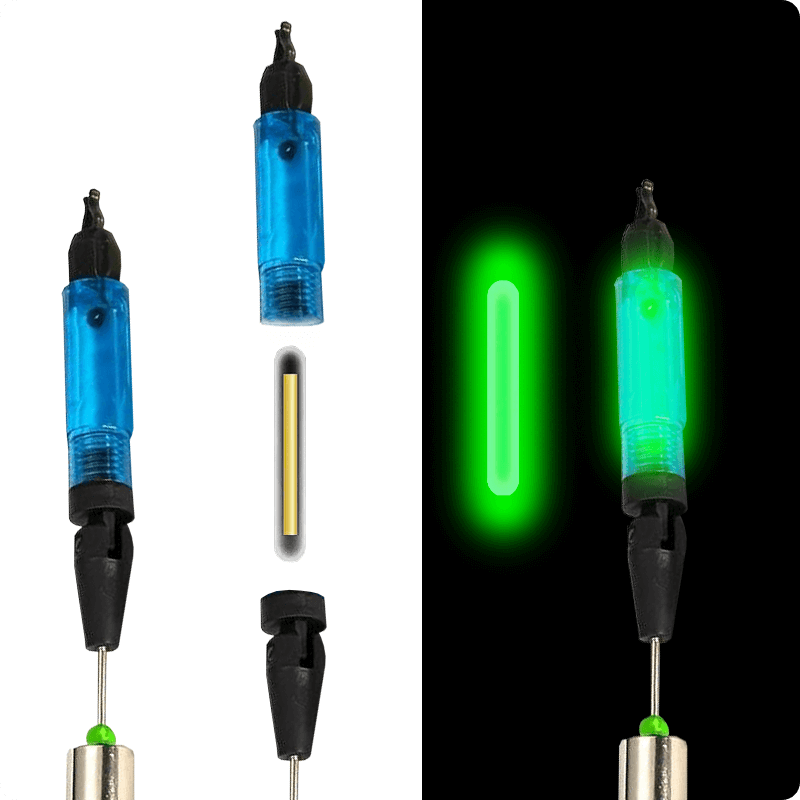 Aby zamontować świetlik, wystarczy odkręcić niebieską końcówkę i włożyć go do środka, korzystanie z tego produktu jest intuicyjne i wygodne. Regulacja chwytaka żyłki/plecionki dodatkowo umożliwia personalizację użytkowania. Natomiast aby zamontować swinger wystarczy nałożyć go na gwint elektronicznego sygnalizatora brań lub końcówki uchwytu do wędki i dokręcić do statywu, podpórki lub stojaka.