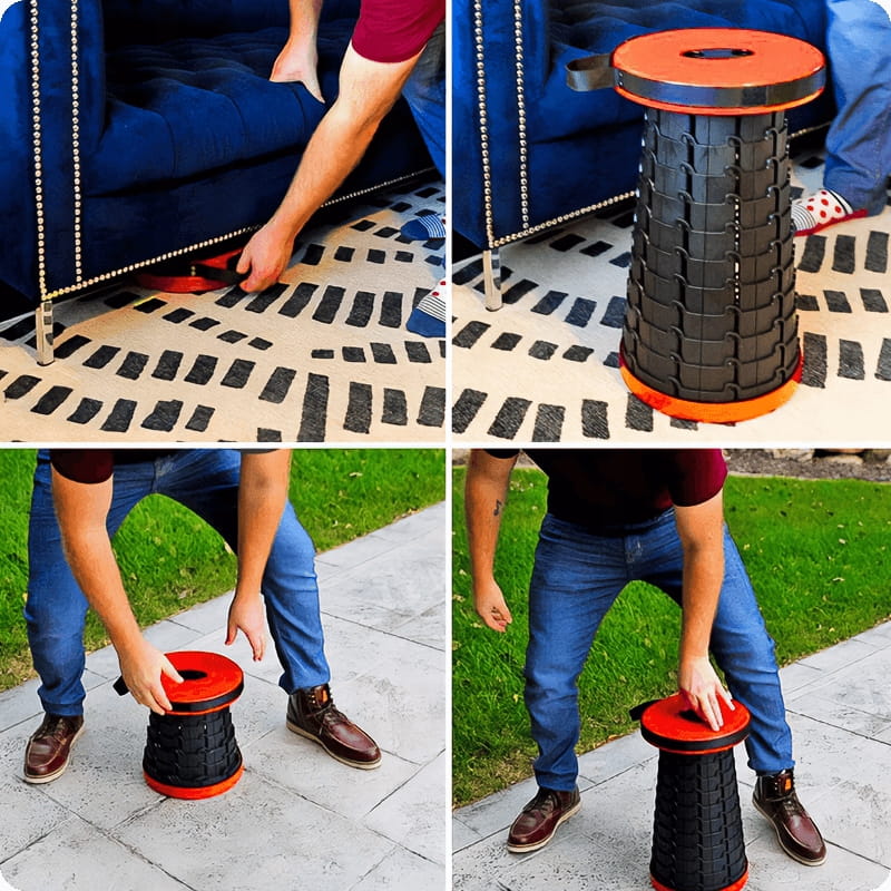 Blokada Rozsuwania: Solidna blokada zapewnia stabilność i bezpieczeństwo podczas użytkowania, eliminując ryzyko przypadkowego złożenia się taboretu.