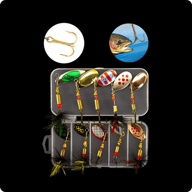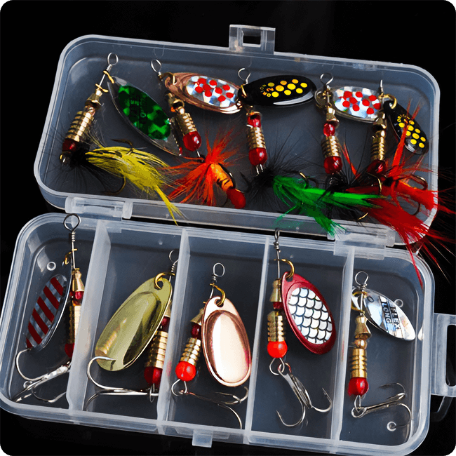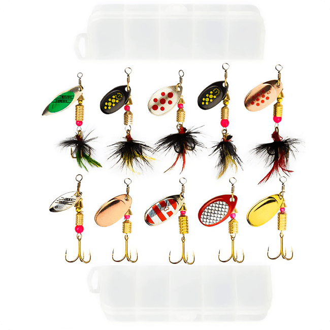 Zestaw 10 Błystek Obrotowych to nie tylko narzędzie, ale również pewność, że wędkarz dysponuje kompletnym zestawem skutecznego sprzętu. Ten profesjonalny zestaw daje możliwość złowienia każdego gatunku ryb drapieżnych. Każda błystka to małe dzieło sztuki, łączące innowacyjność, trwałość i skuteczność w jednym zestawie. Błystki zapakowane są w dopasowane pudełko dzięki czemu nie potrzebujesz dodatkowych pojemników.