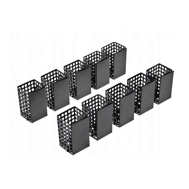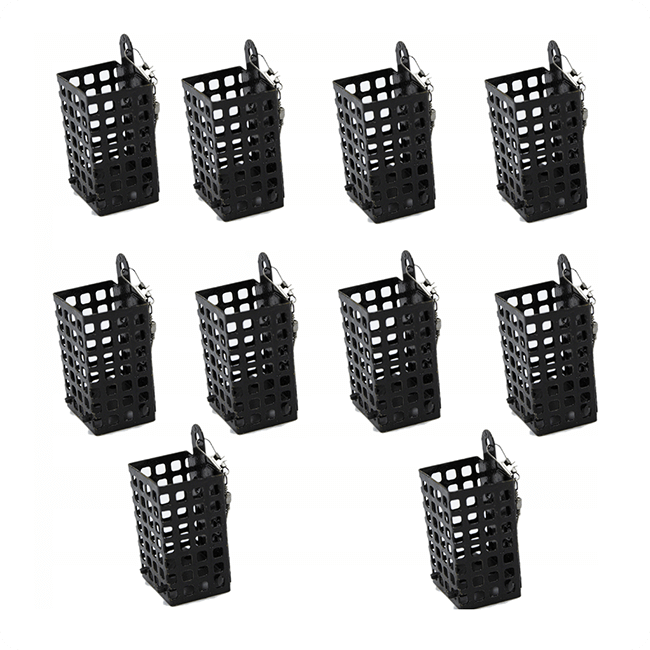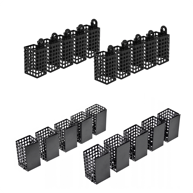Konstrukcja koszyków w BASKET FEEDER KIT 10 dzięki doczepionemu wysokiej jakości krętlikowi z agrafką, umożliwia płynną wymianę koszyków podczas łowienia. Każdy koszyk został dokładnie wyważony, co gwarantuje precyzyjne dostarczenie zanęty w miejsce połowu.