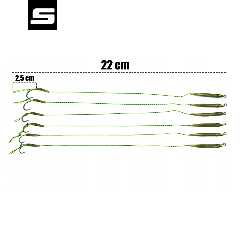 Zestaw przyponów karpiowych Sahido CARP RIG SET 2/4/6 to doskonały wybór dla każdego karpiarza, który poszukuje niezawodnych i precyzyjnie wykonanych akcesoriów wędkarskich. Zestaw zawiera 6 przyponów karpiowych z włosem, wyposażonych w haki teflonowe o wyjątkowej ostrości i wytrzymałości. Haki w rozmiarach 2, 4, oraz 6 (po dwie sztuki każdego rozmiaru) są doskonale dopasowane do różnych przynęt, a zastosowanie pozycjonera haczyka gwarantuje, że haki wbijają się w dolną wargę ryby, co znacząco zwiększa skuteczność zacięcia.