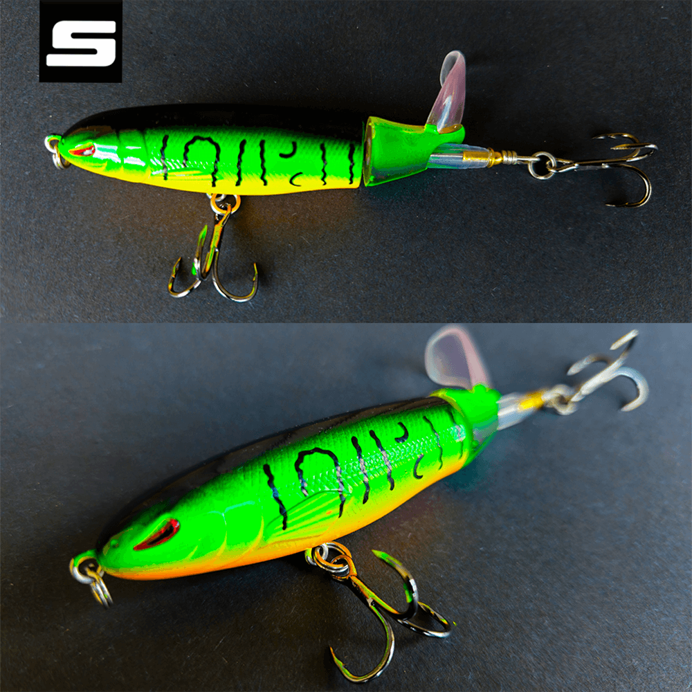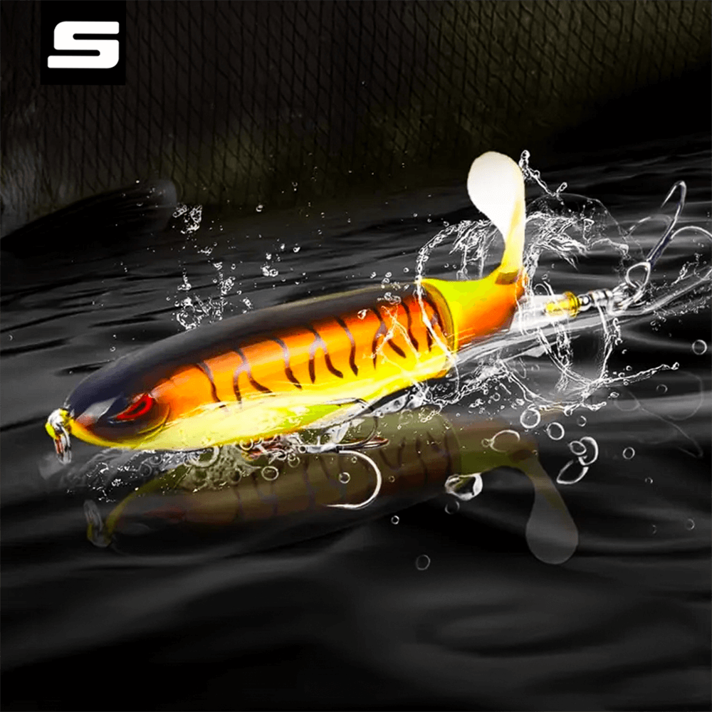 Wobler wyposażony jest w obrotową płetwę, która generuje unikalne i atrakcyjne dla ryb drgania na powierzchni wody. Dodatkowo, wbudowana grzechotka emituje wysokie częstotliwości, przyciągając uwagę drapieżników nawet na duże odległości.